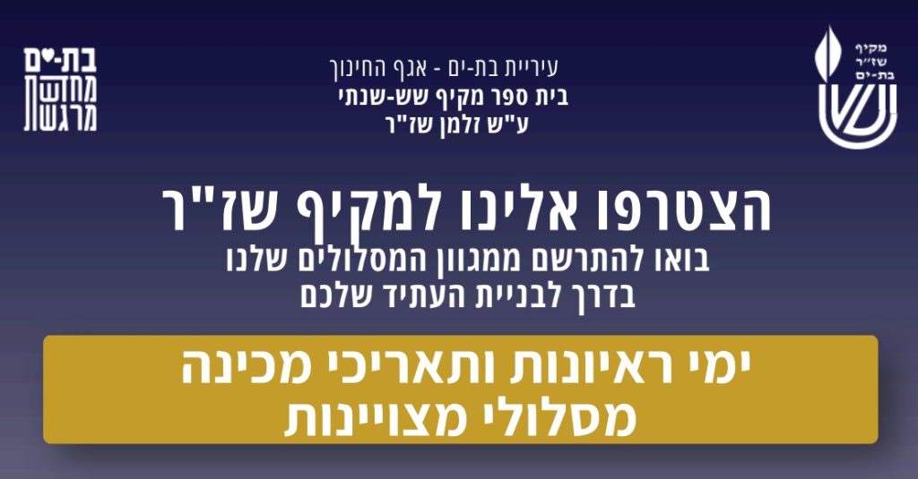 יחד נצעד לתעודת בגרות מלאה, איכותית ערכית וחברתית.